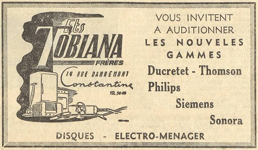 | 04 | "ELECTROSON" (Ets TOUBIANA anciennement FABIANI) | matériel télévisuel (1961) | |||